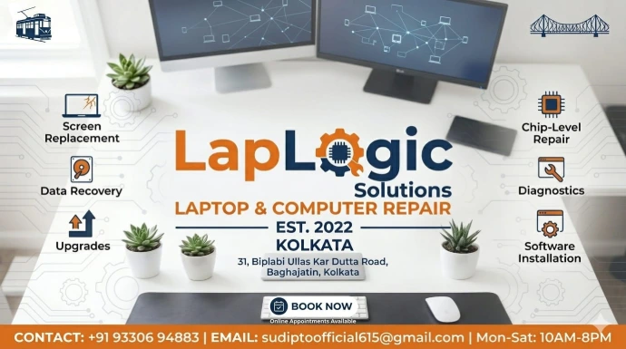 From the station, you can take a short 5-minute walk or a quick rickshaw ride to LapLogic Solutions, located at 31, Biplabi Ullas Kar Dutta Road, Baghajatin Place.